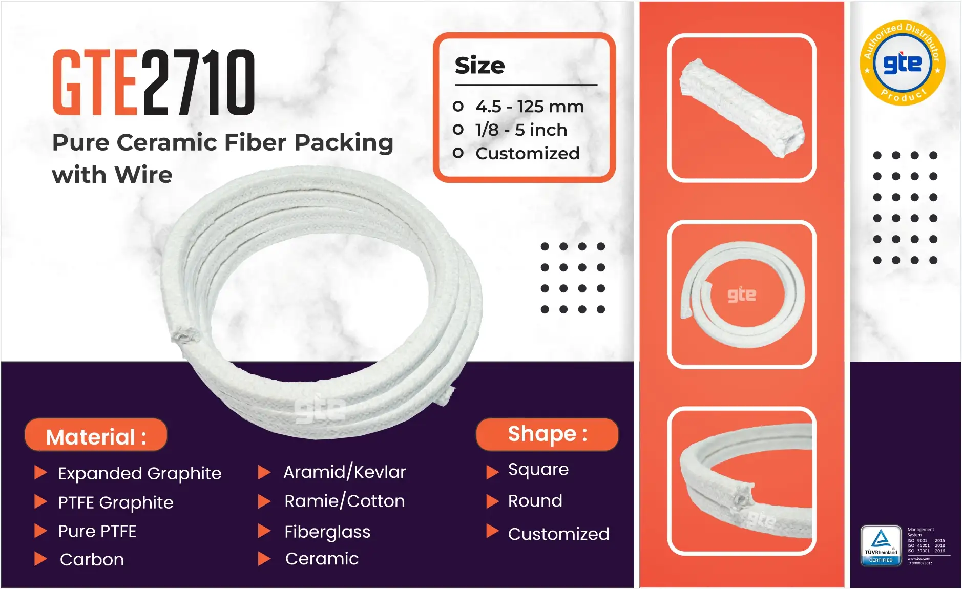 Construction :  High Temperature Wire Reinforced Ceramic Braided Packing Ceramic