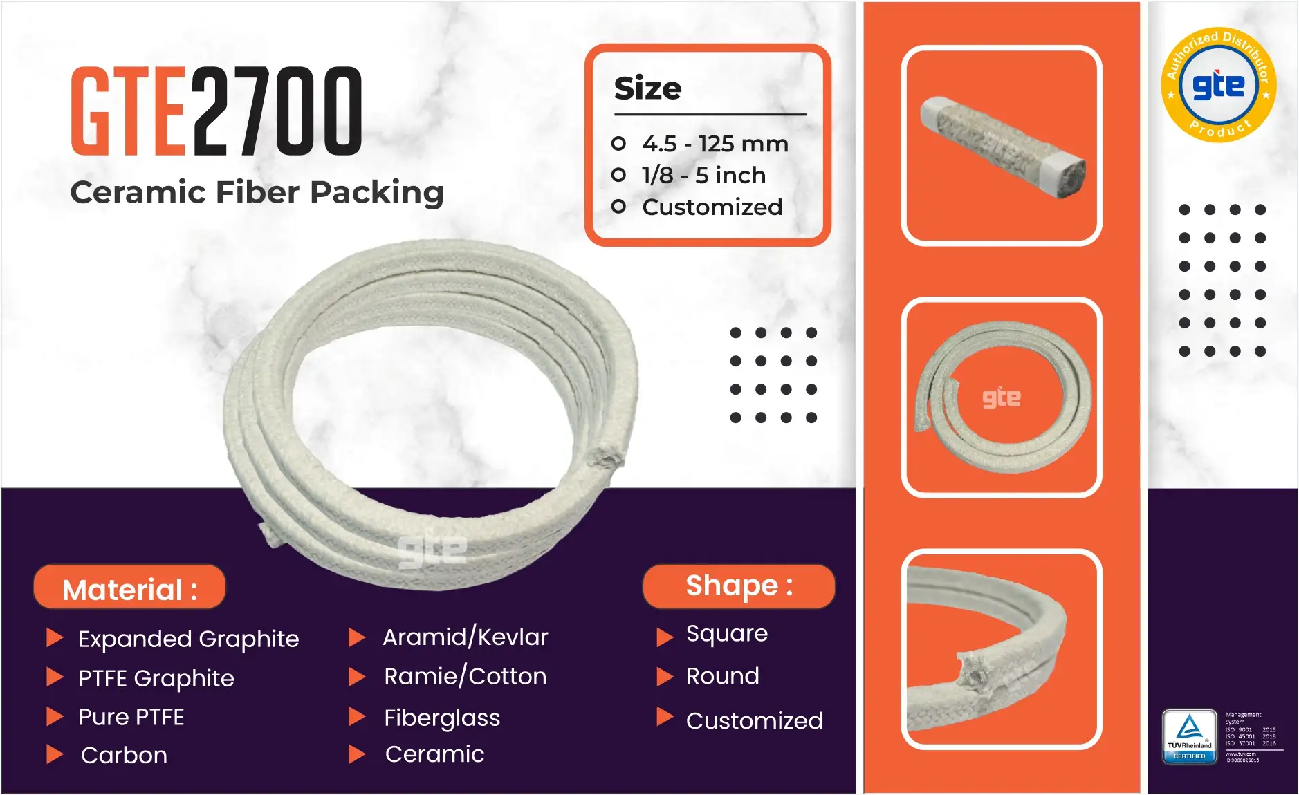 Construction :  High Temperature Ceramic Fiber Gland Packing