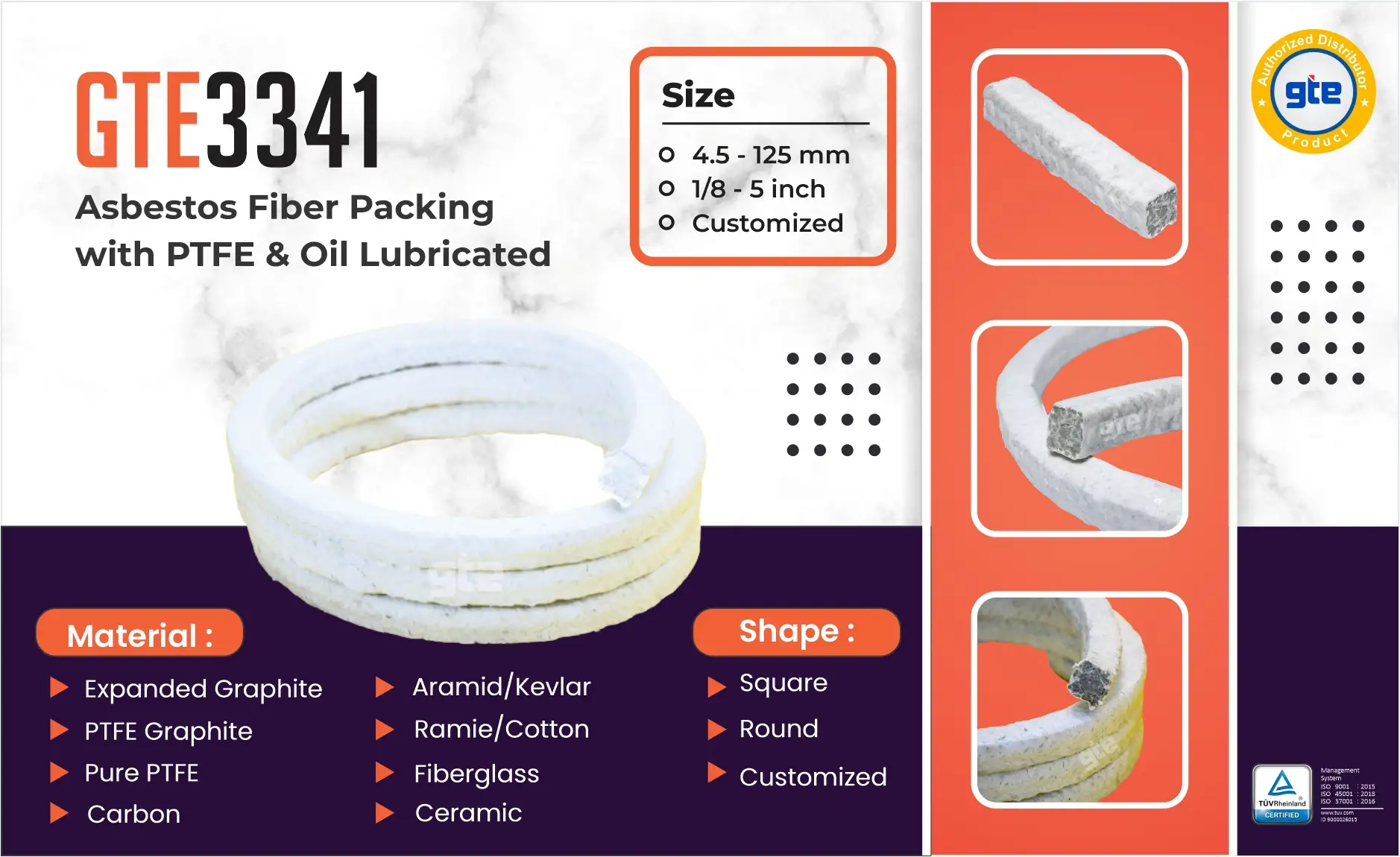 BRAIDED FROM HIGH QUALITY ASBESTOS FIBER IMPREGNATED WITH PTFE & OIL LUBRICATION. IT HAS ANTI-CORROSIVE AND LONG SERVICE PROPERTIES.