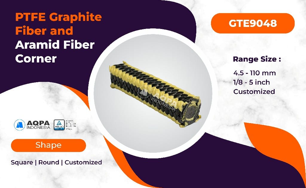 GRAPHITE PTFE PACKING WITH ARAMID FIBER CORNER IS A MULTI-YARN PACKING, THE CORNERS OF PACKING ARE MADE OF ARAMID FIBER YARNS. IMPREGNATED WITH PTFE, THE FRICTION FACES ARE MADE OF GRAPHITE PTFE YARN. IT IS PRE-LUBRICATED WITH SILICONE OIL.