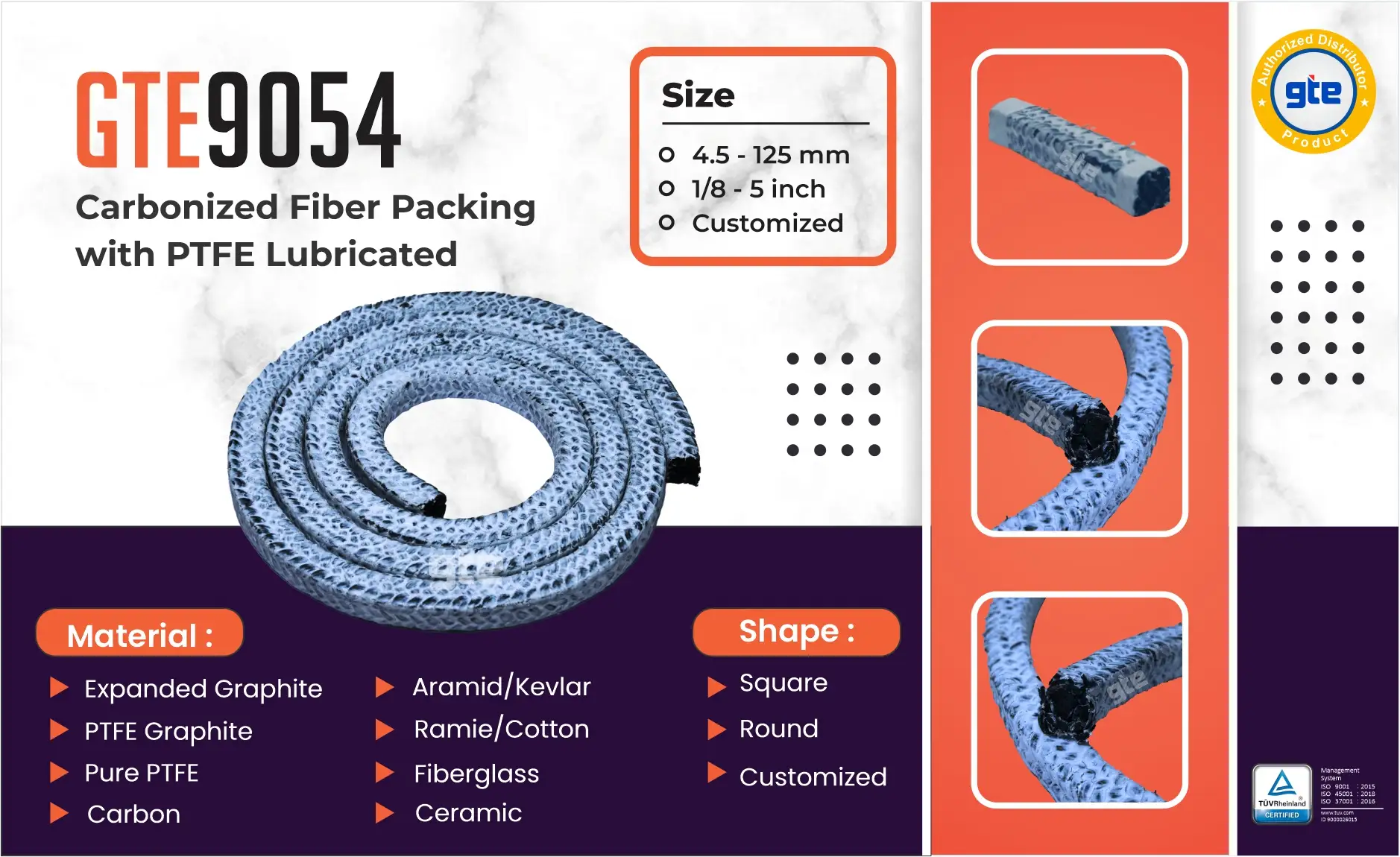 Carbonized fiber packing is a braided packing made of carbonized poly acrylonitrile fibers and finished with PTFE dispersion and lubricant.