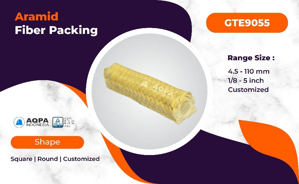 ARAMID FIBER PACKING BRAIDED FROM HIGH QUALITY ARAMID AND KEVLAR FIBER WITH PTFE IMPREGNATED AND LUBRICANT ADDITIVE. IT IS HIGHLY RESISTANT BUT MAY DAMAGE THE SHAFT IF NOT USED PROPERLY. THEREFORE, MINIMUM SHAFT HARDNESS OF 60HRC IS HIGHLY RECOMMENDED.